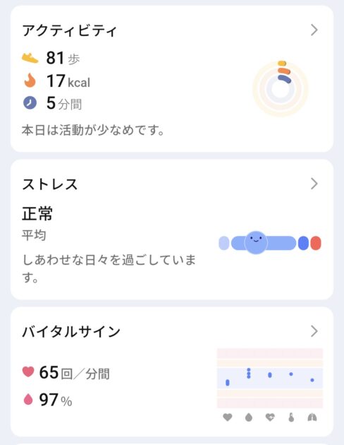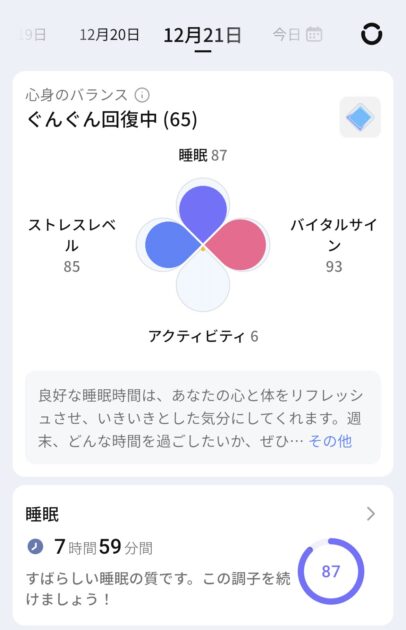グラフも見やすく、「昨日はよく眠れた」「今日はストレスが高い」といった体の状態が直感的に分かります。
